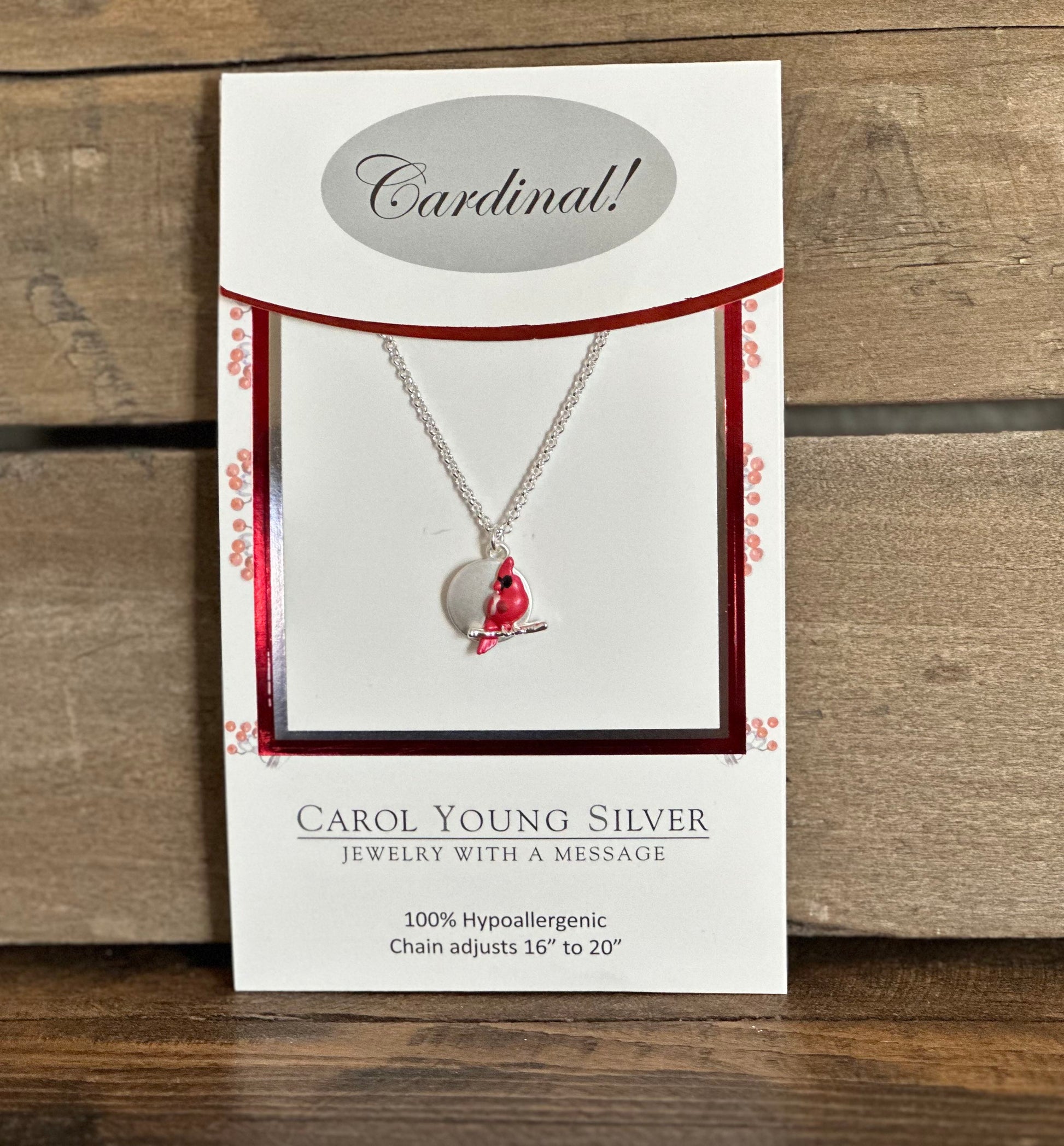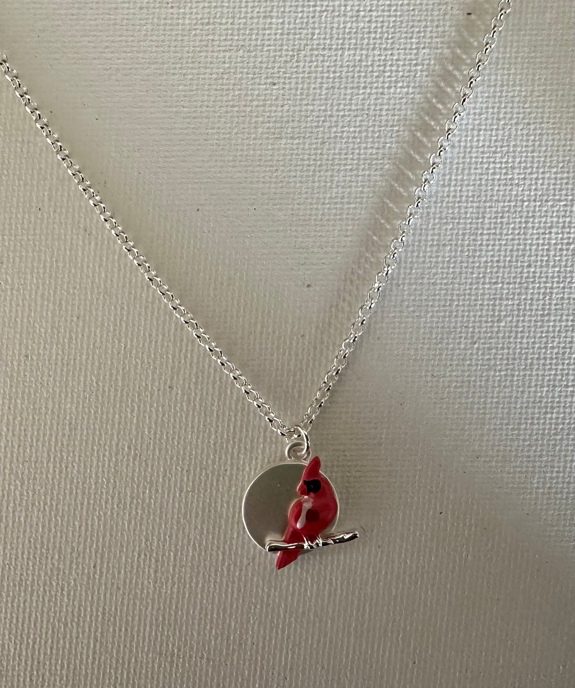 Just in! All new design featuring a sweet, realistic cardinal perched on a silver tone branch, then set against a matte finish disk.