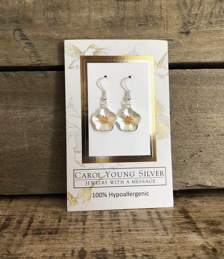These stunning hibiscus earrings are accented with gold tone.