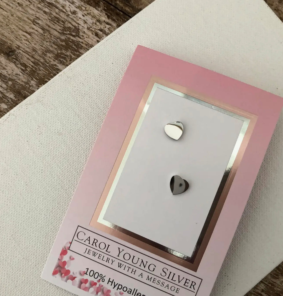 The earrings come packaged on a soft, pink card bearing the tag line,